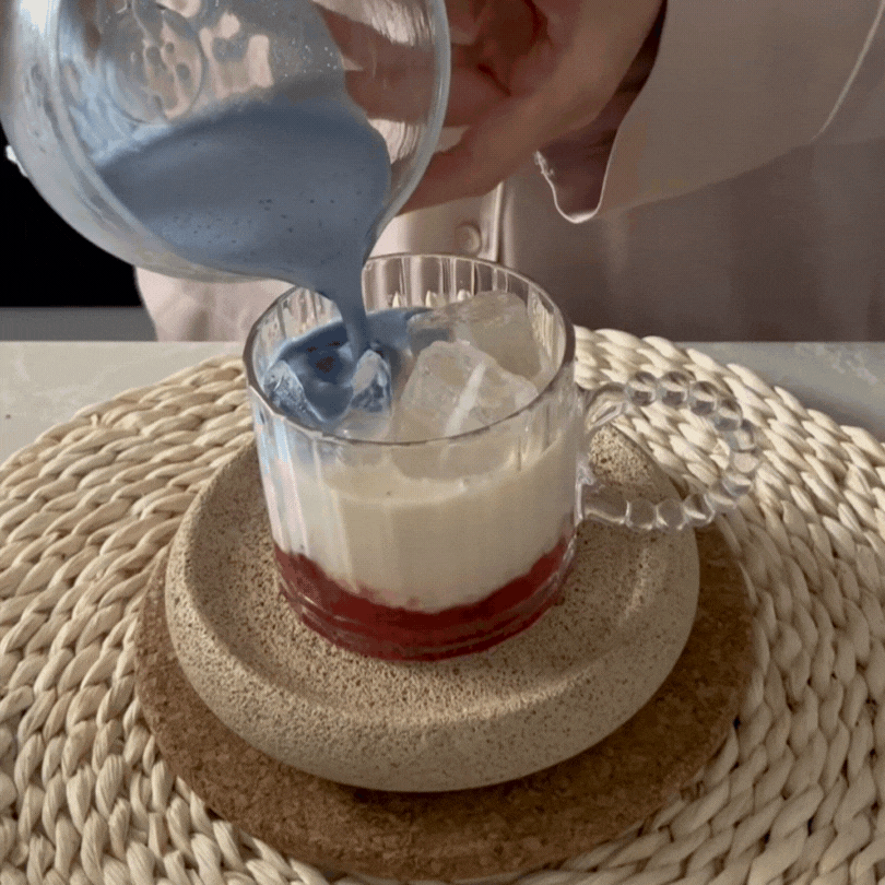 Napój jest wrażliwy na pH oraz reaguje na kwaśne odczyny. Jeśli dodasz odrobinę soku z cytrusów – kolor zmieni się na fioletowy!