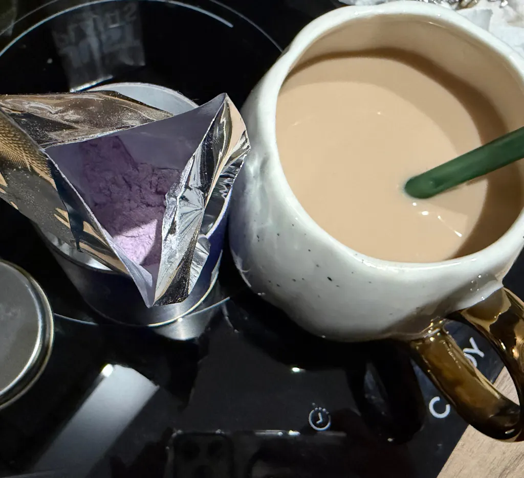 Jedwabista, gładka i kremowa – tworzy idealną bazę do ube latte oraz innych napojów roślinnych, nadając im wyjątkowy, fioletowy odcień i aksamitną głębię.